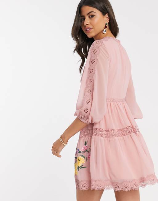 Asos Mini Skater Dress With Butterfly Embroidery Asos Mini Skater Dress With Butterfly Embroidery - Asos design cotton poplin ruched bust mini skater dress in botanical embroidery.