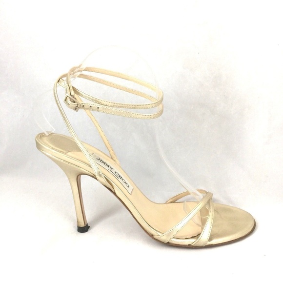 Jimmy Choo Gold Strappy Sandals Jimmy Choo Gold Strappy Sandals / These elegant sandals will take you from lunching with the girls to black tie dinners.